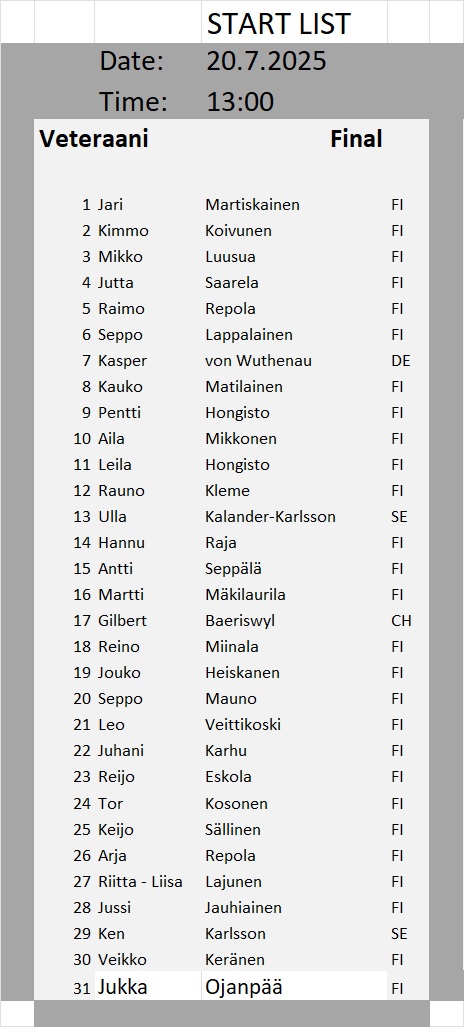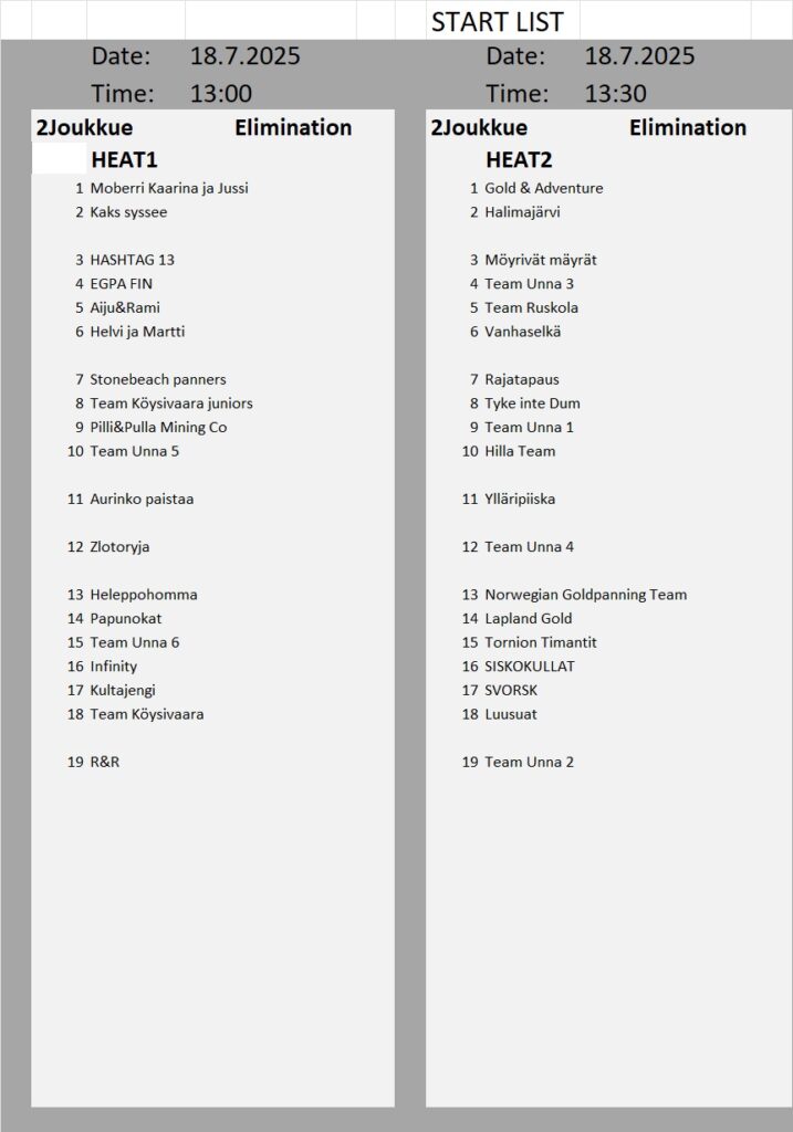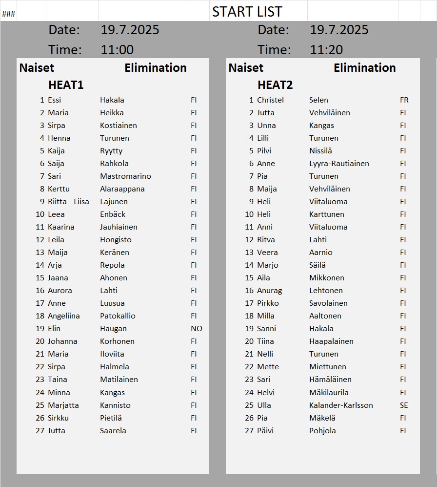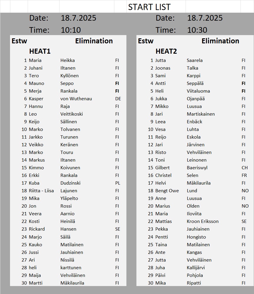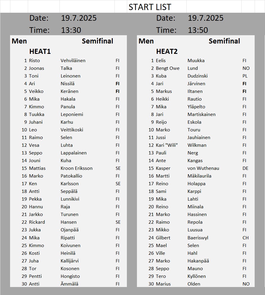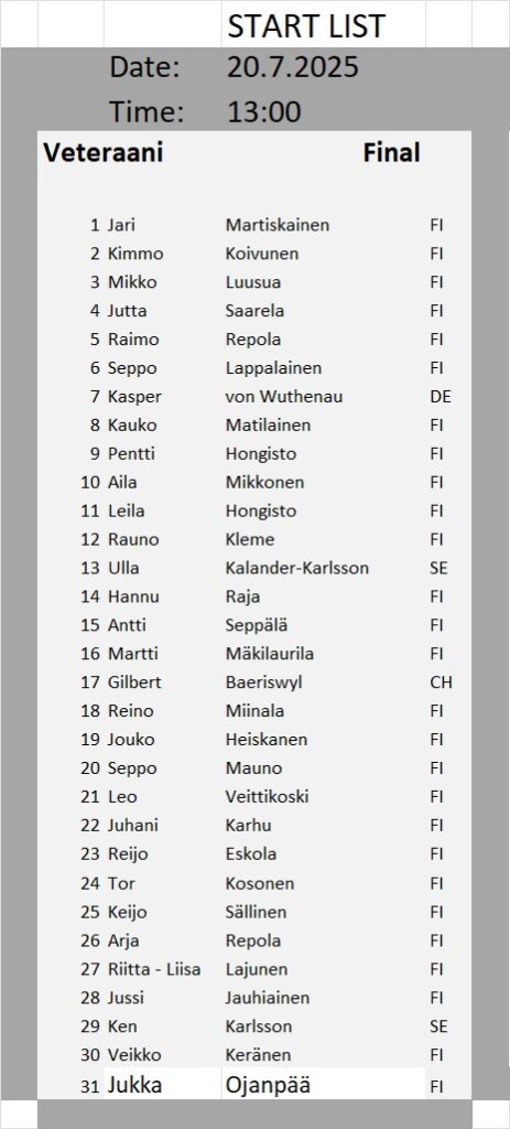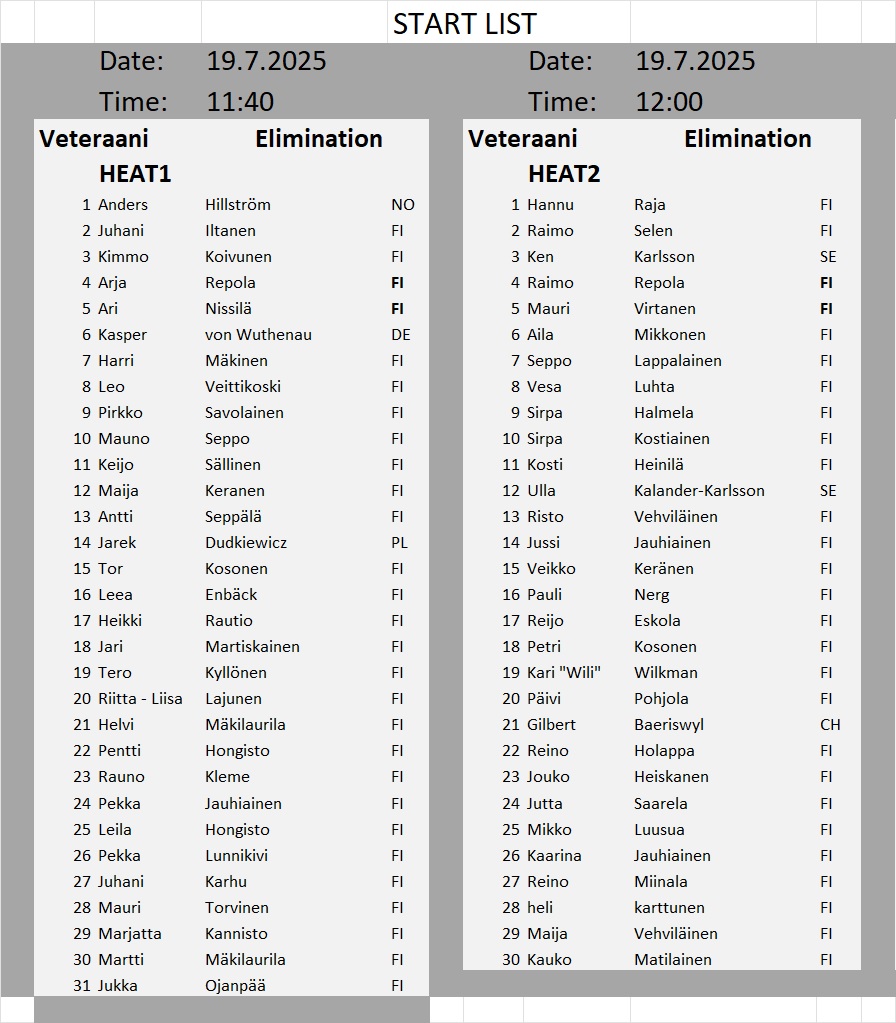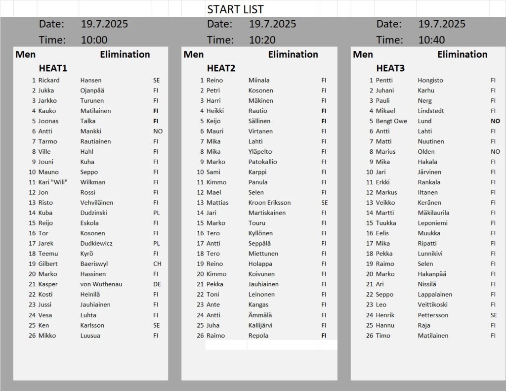 Kullanhuuhdonnan SM-kisojen lähtölistat