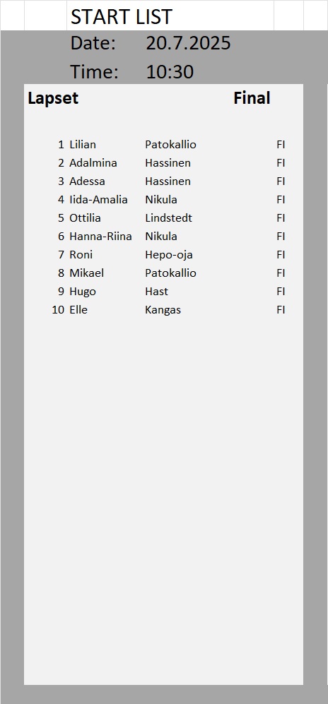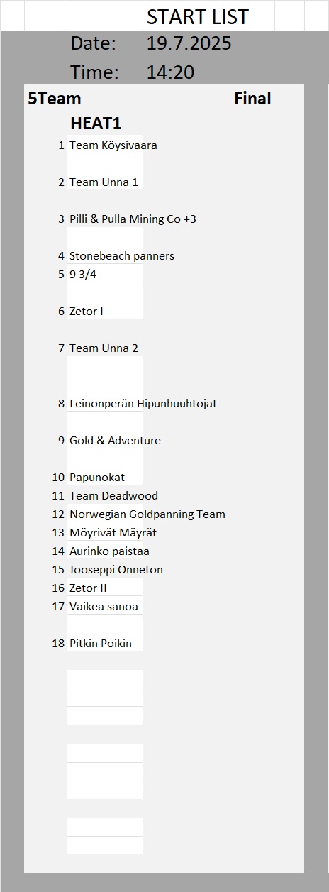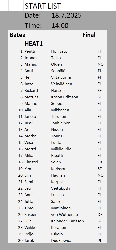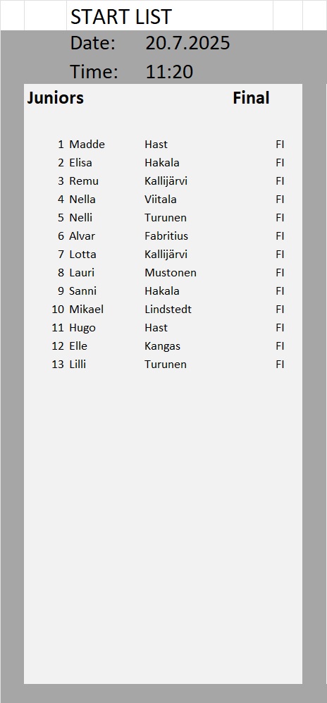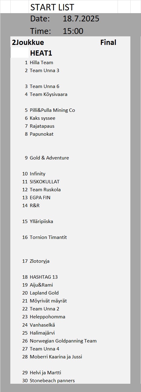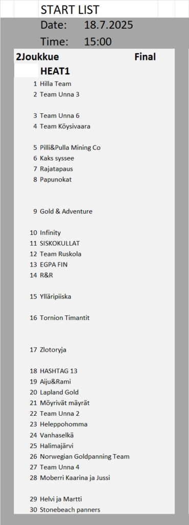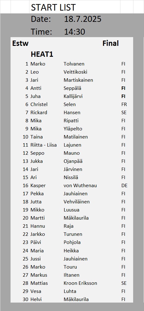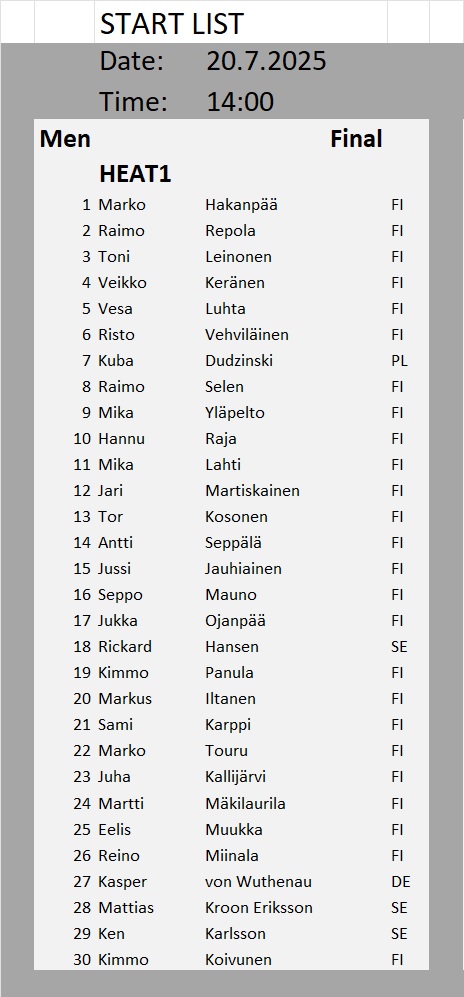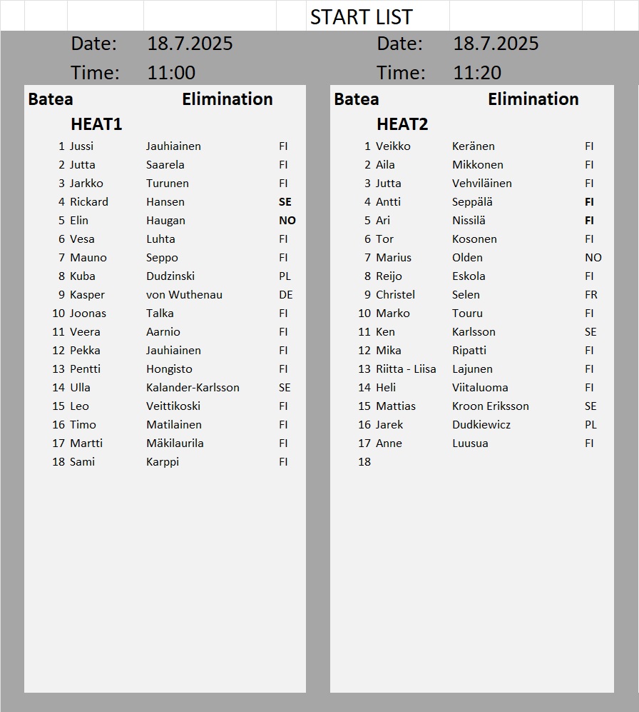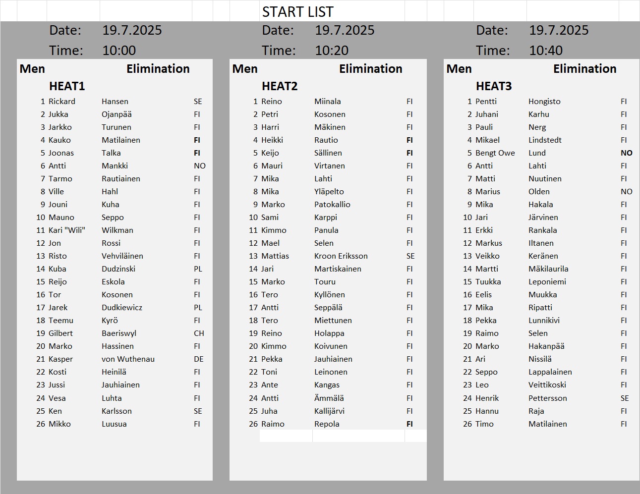 Kullanhuuhdonnan SM-kisojen lähtölistat